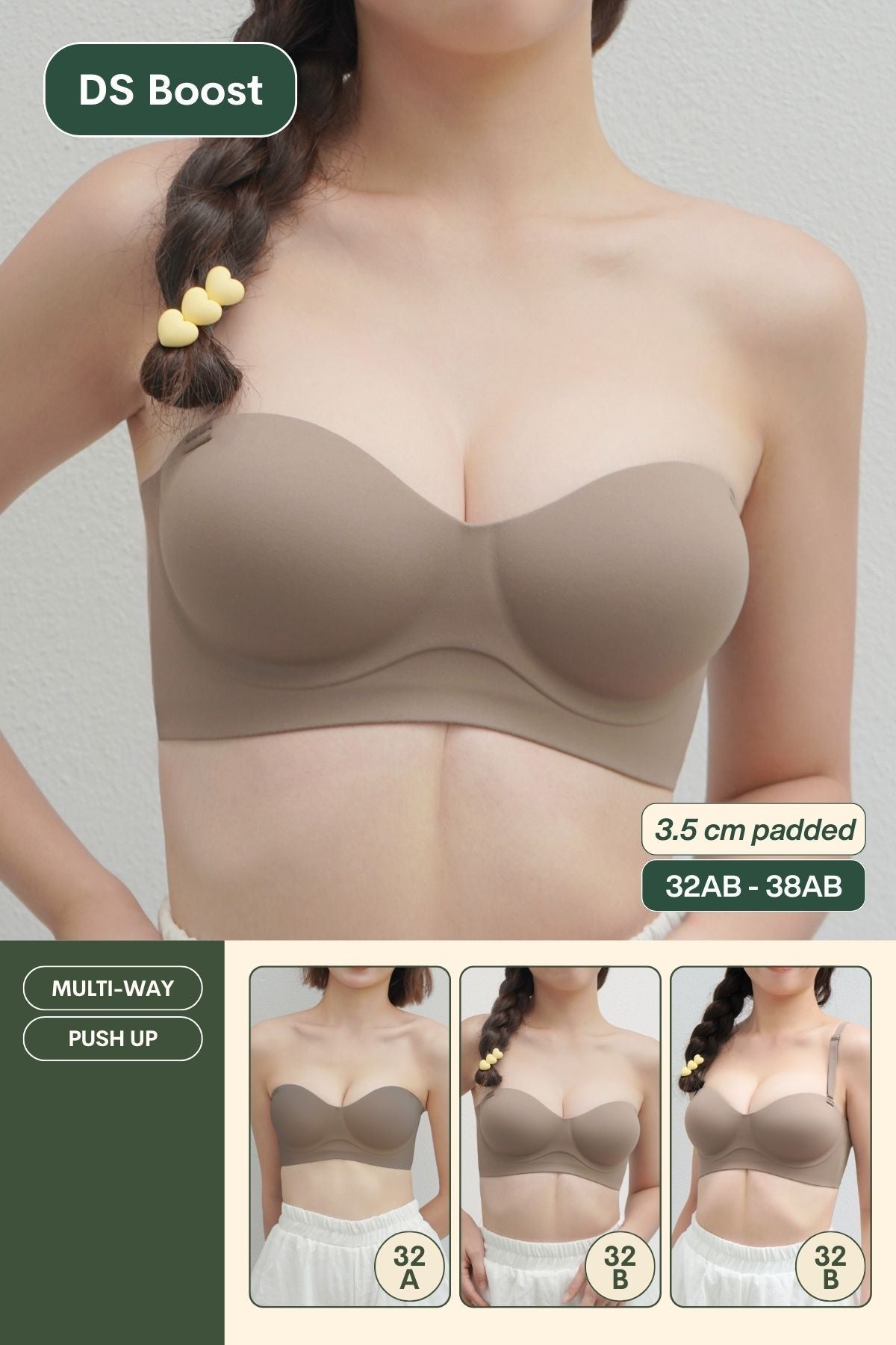 Daily Softie Boost Multi-Way Push Up Bra In Hipster Brown - Size 32AB-38AB